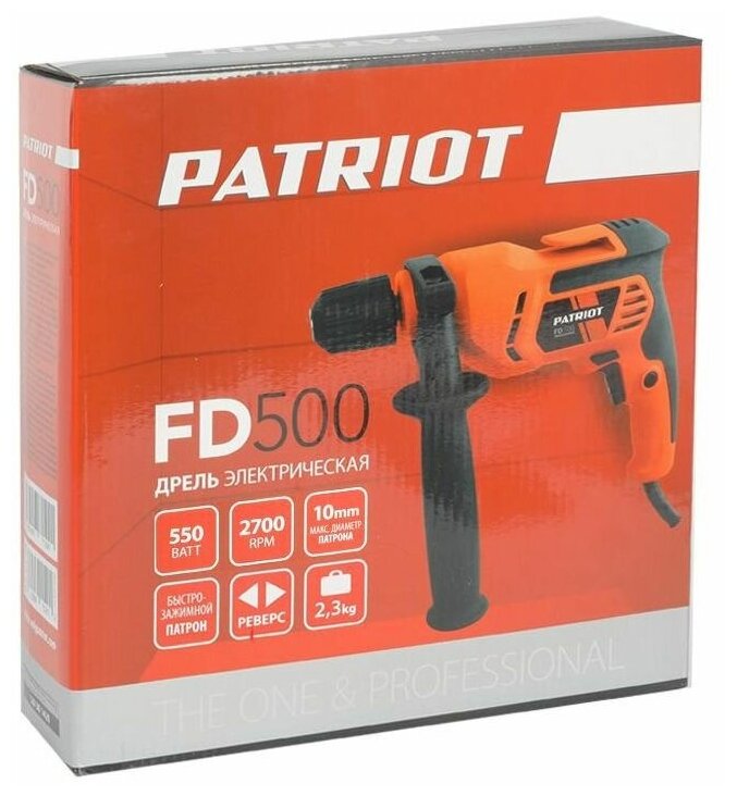 Дрель электрическая PATRIOT FD 500 / 550Вт / 2700об/мин / d сверла 10мм / металл/дерево - 10/20 мм