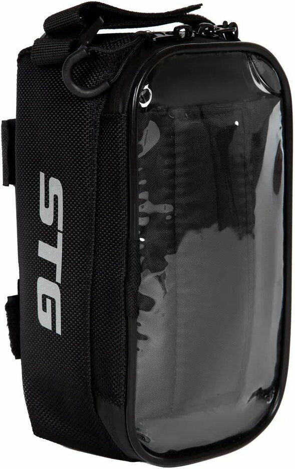 Велосумка на раму 19х9х10см c чехлом для телефона STG 555-538 черная