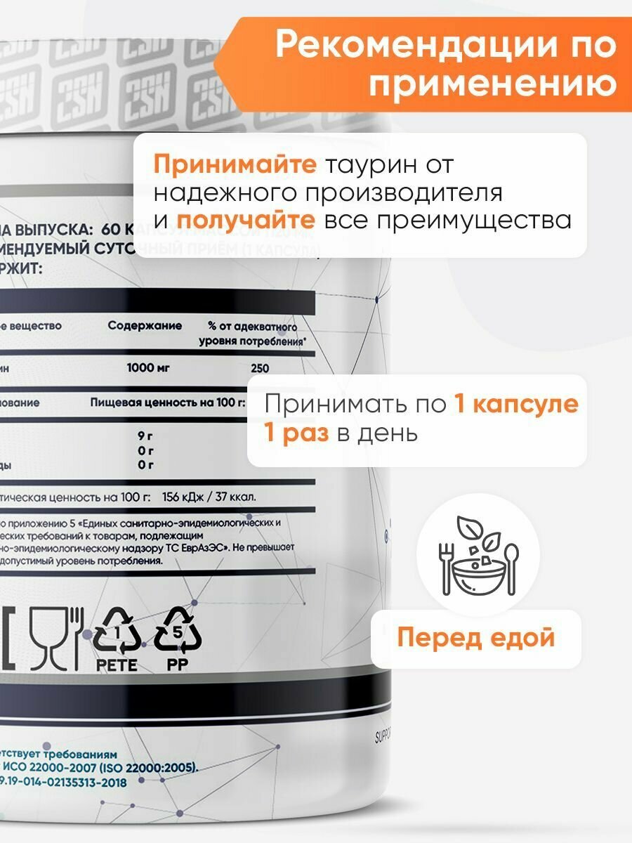 Таурин 1000 мг 2SN 60 капсул интересное: