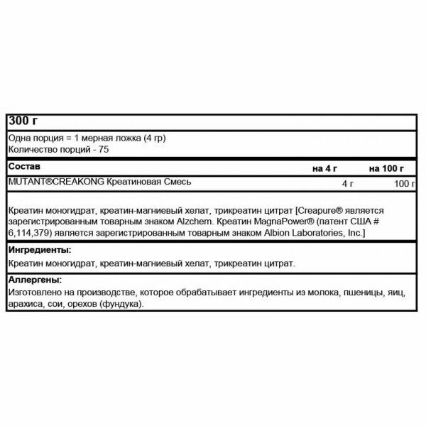 Mutant реатиновый комплекс Creakong / креатин моногидрат, 75 порций, 300 гр.