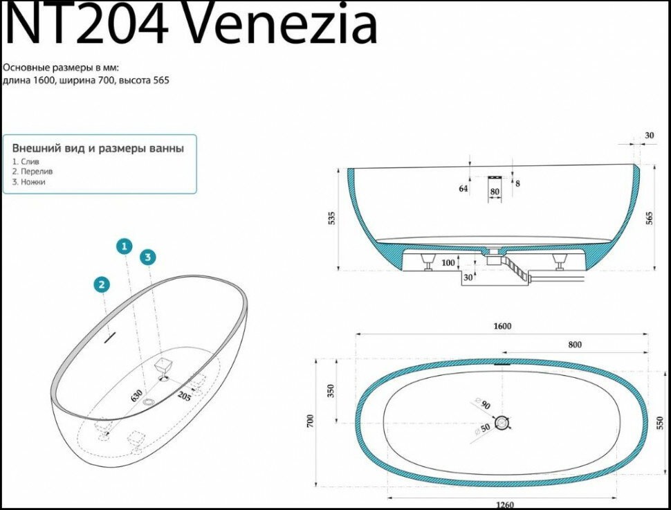 Ванна из искусственного камня NT Bagno Venezia NT 204 160x70 (Nt bagno)