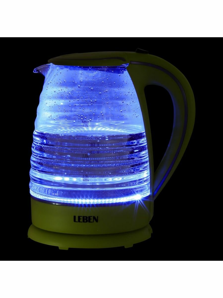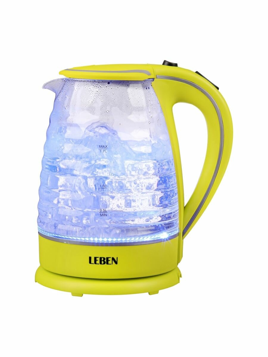 Чайник электрический 1,7л, 1850Вт, скрытый нагр.элемент, стекло, рифлёное стекло, LEBEN