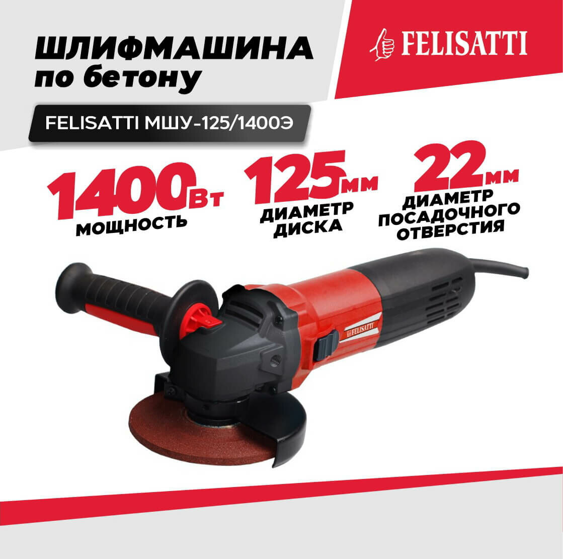 Шлифовальная машина по бетону Felisatti МШУ-125/1400Э электроинструмент, подарок на день рождения мужчине, любимому, папе, дедушке, парню