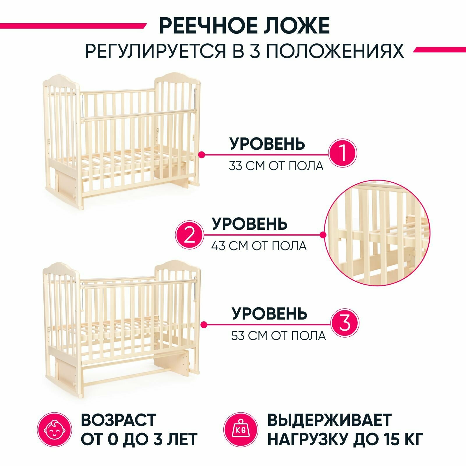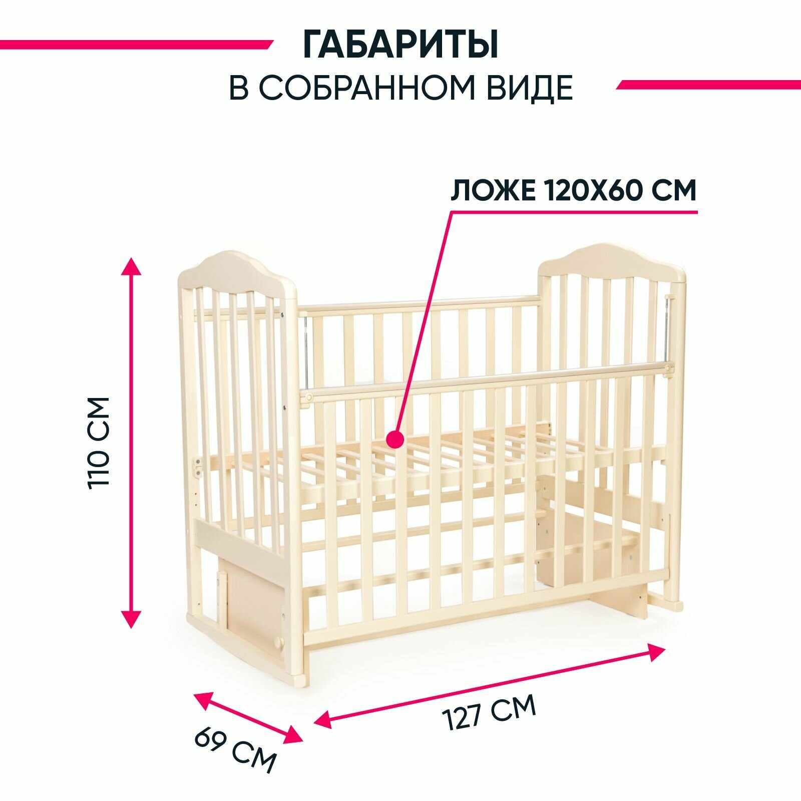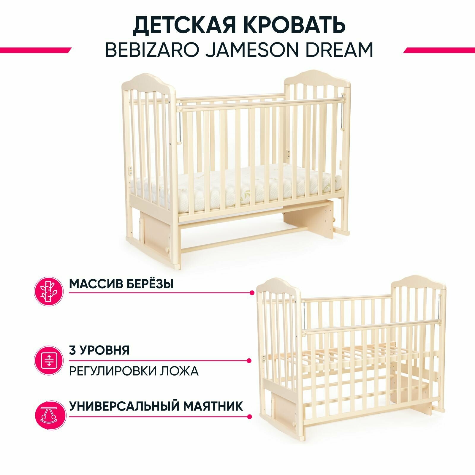 Кроватка для новорожденных BEBIZARO JAMESON DREAM VANILLA Универсальный маятник (ШхГхВ)127х69х110 см
