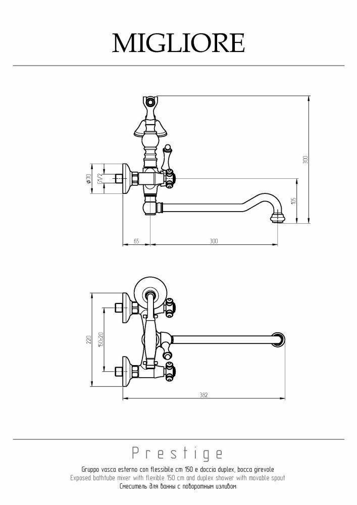 Смеситель для ванны Migliore Prestige 31598