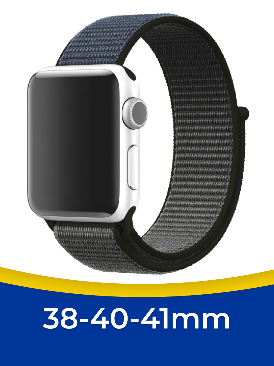 Нейлоновый ремешок для смарт часов Apple Watch series 1-7 и Эпл Вотч SE 38-41 mm / Сменный тканевый ремешок для Эппл Вотч на липучке (Черно-белый)