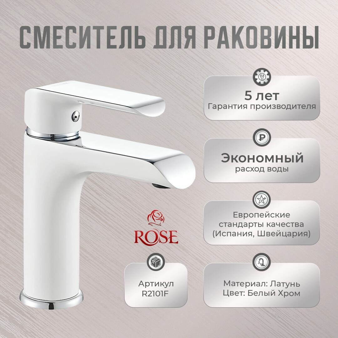 Смеситель для раковины ROSE R2101F латунь, цвет белый/ хром интересное: