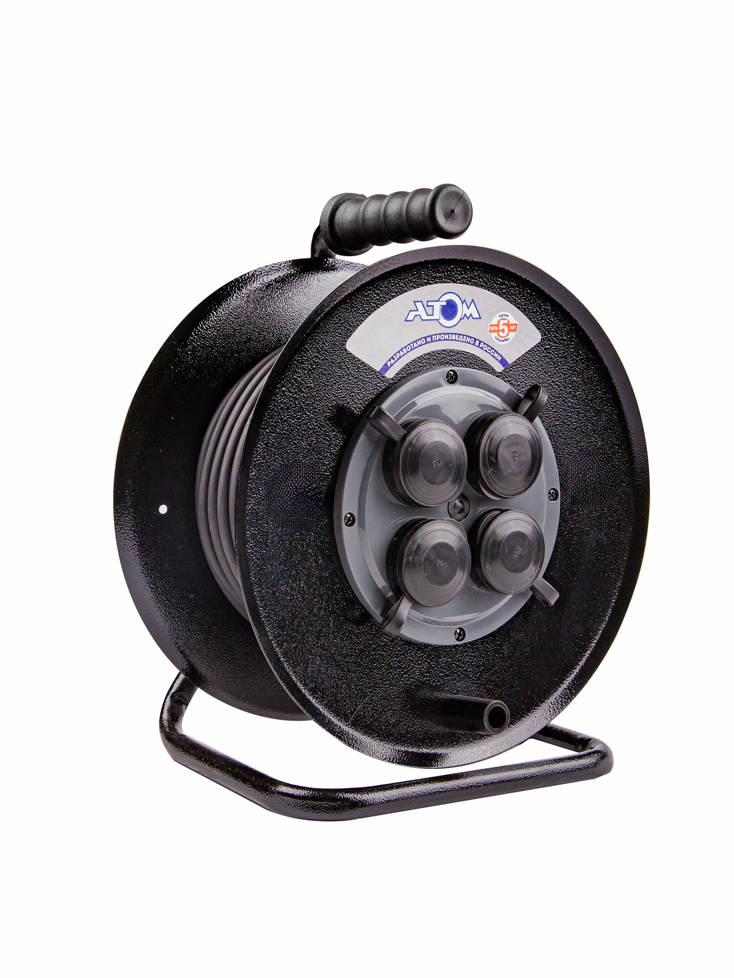Удлинитель силовой морозостойкий КГ 3500 Вт 30м на металлической катушке IP 44 ( c/ з) - атом