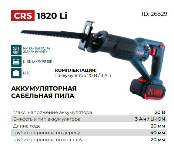 Аккумуляторная сабельная пила Alteco CRS 1820Li 26829 интересное: