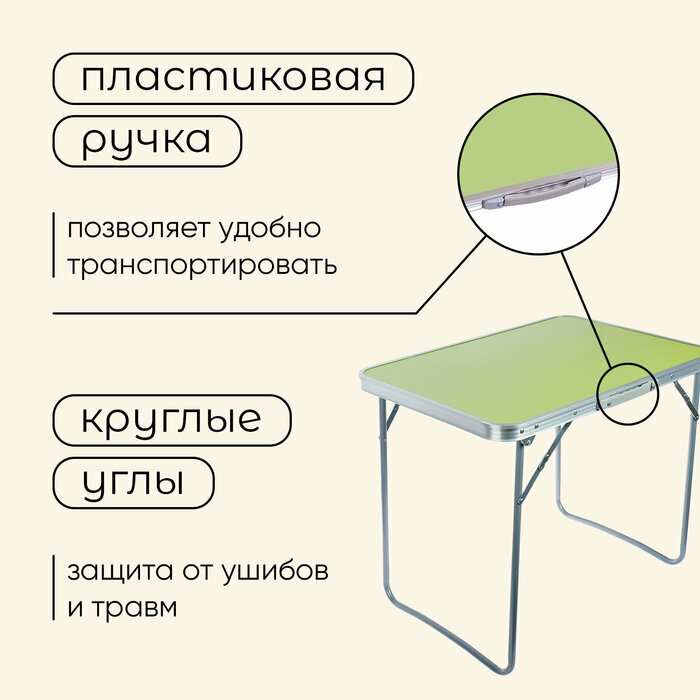 Стол туристический, складной, 70 x 50 x 60 см, цвет зелёный