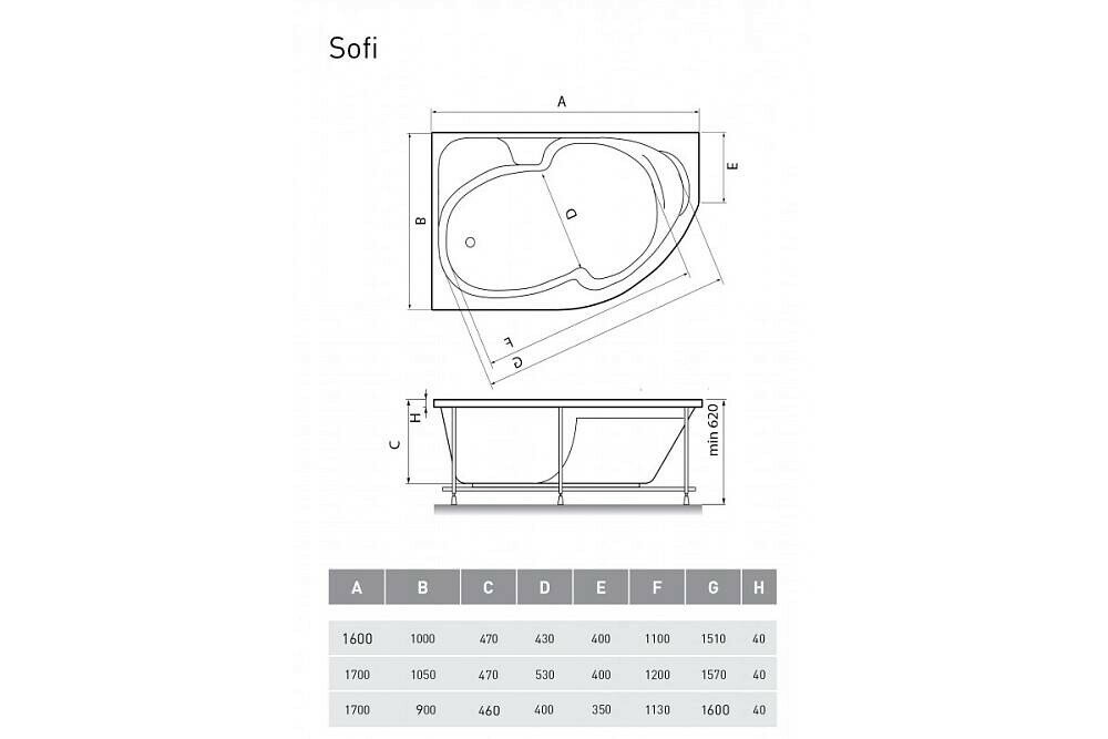 Ванна акриловая Relisan Sofi L Гл000009446, 170х105