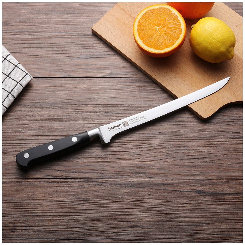Ниже Вы можете прочитать отзывы на Нож филейный FISSMAN Kitakami 20см, ознакомится с подробными характеристиками, посмотреть интересные обзоры и фотографии на Нож филейный FISSMAN Kitakami 20см.