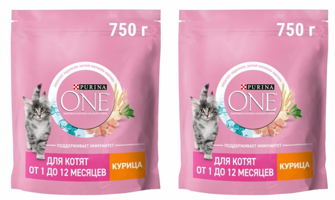 Сухой корм Purina ONE для котят, с курицей и цельными злаками, 750 г, 2 уп