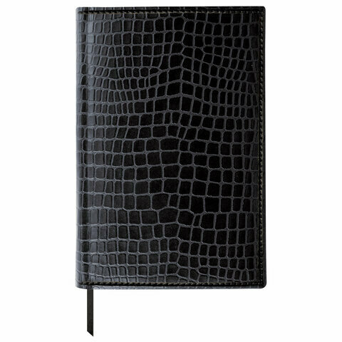 Ежедневник полудатированный А5 (138х213 мм) BRAUBERG "Alligator", под крокодиловую кожу, 192 л., крем. блок, золотой срез, черный, 124985