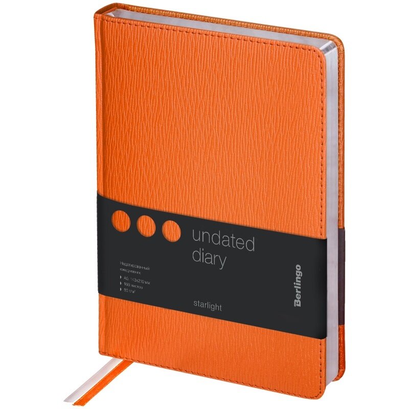 Купить Ежедневник недатированный Berlingo A5, 160 листов, кожзам, "Starlight", серебряный срез, оранжевый (UD0_83503)