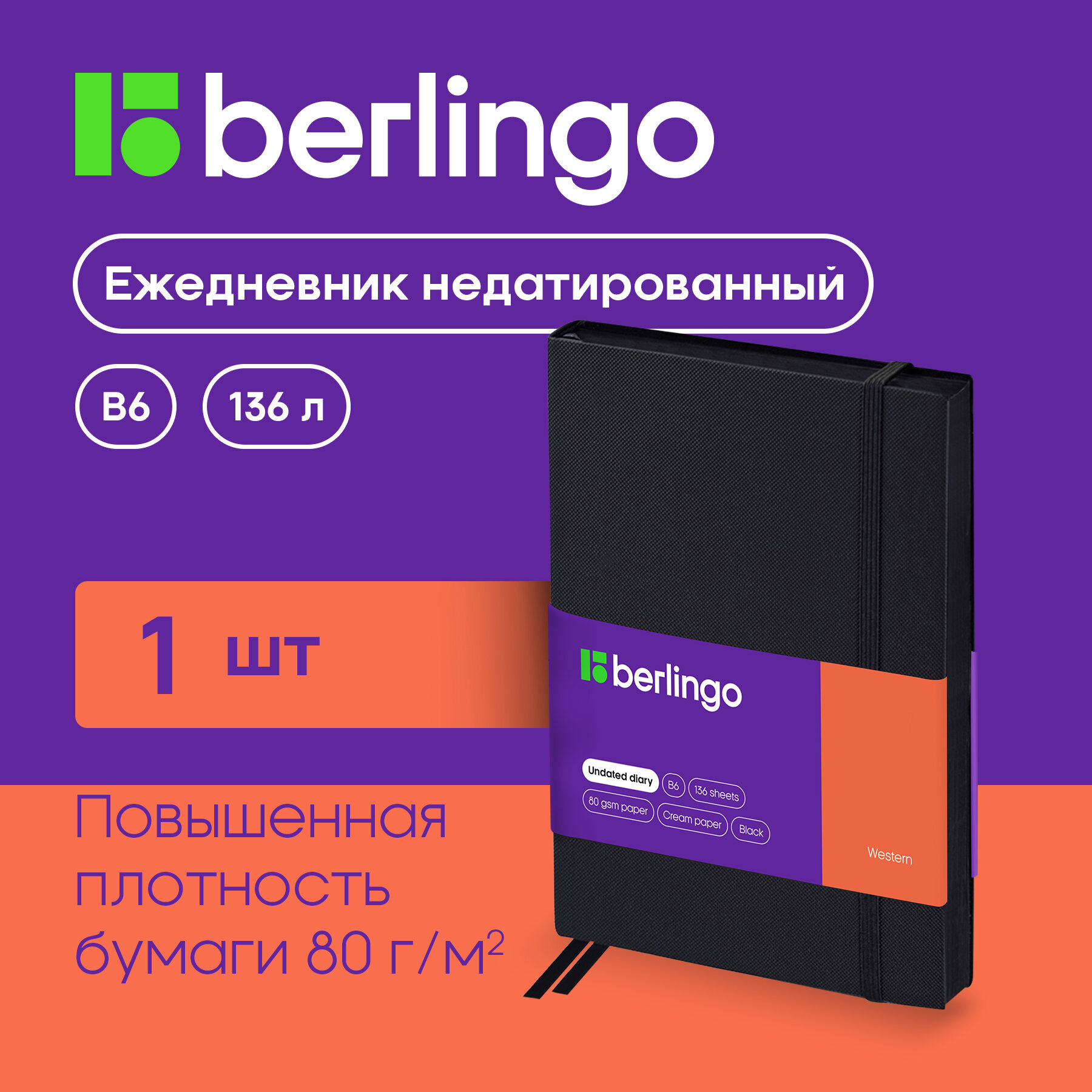 Ежедневник недатированный В6 Berlingo Western (136 листов) обложка кожзам, с резинкой, черная, цв.срез (UD0_85601)