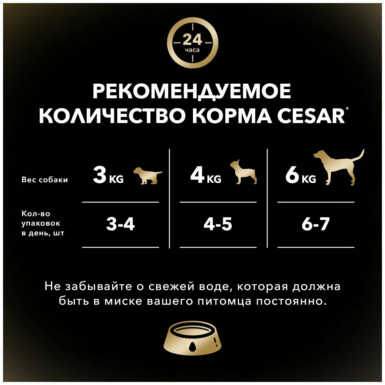| Дозировка | - для собак весом от 3 до 4-х кг - не более 2-3-х упаковок в день r - для собак весом от 4 до 6 кг - не более 3-4-х упаковок в день r - для собак весом 6 кг - не более 4-5-ти упаковок в день |