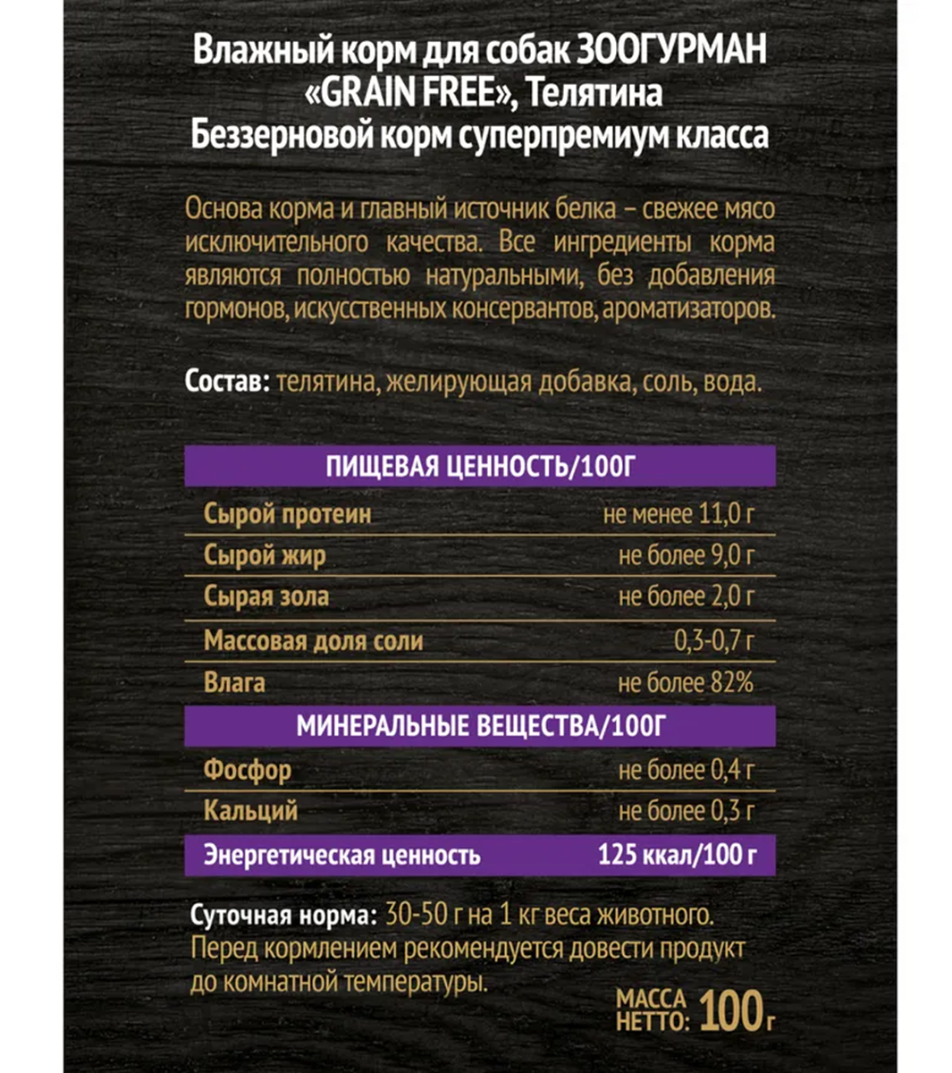 Зоогурман Grain Free консервы для собак Телятина 100г интересное: