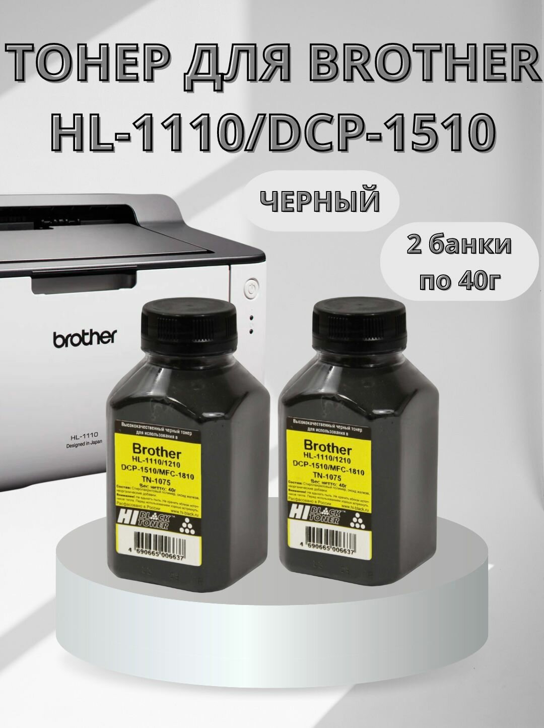 Комплектация 2 шт. Тонер HI-BLACK для BROTHER HL-1110/1210/DCP-1510/MFC-1810, фасовка 40 г