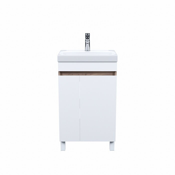 Тумба с умывальником напольная с дверцами 50 см белая/под дерево Zodiac IDDIS ZOD5ADFi95K