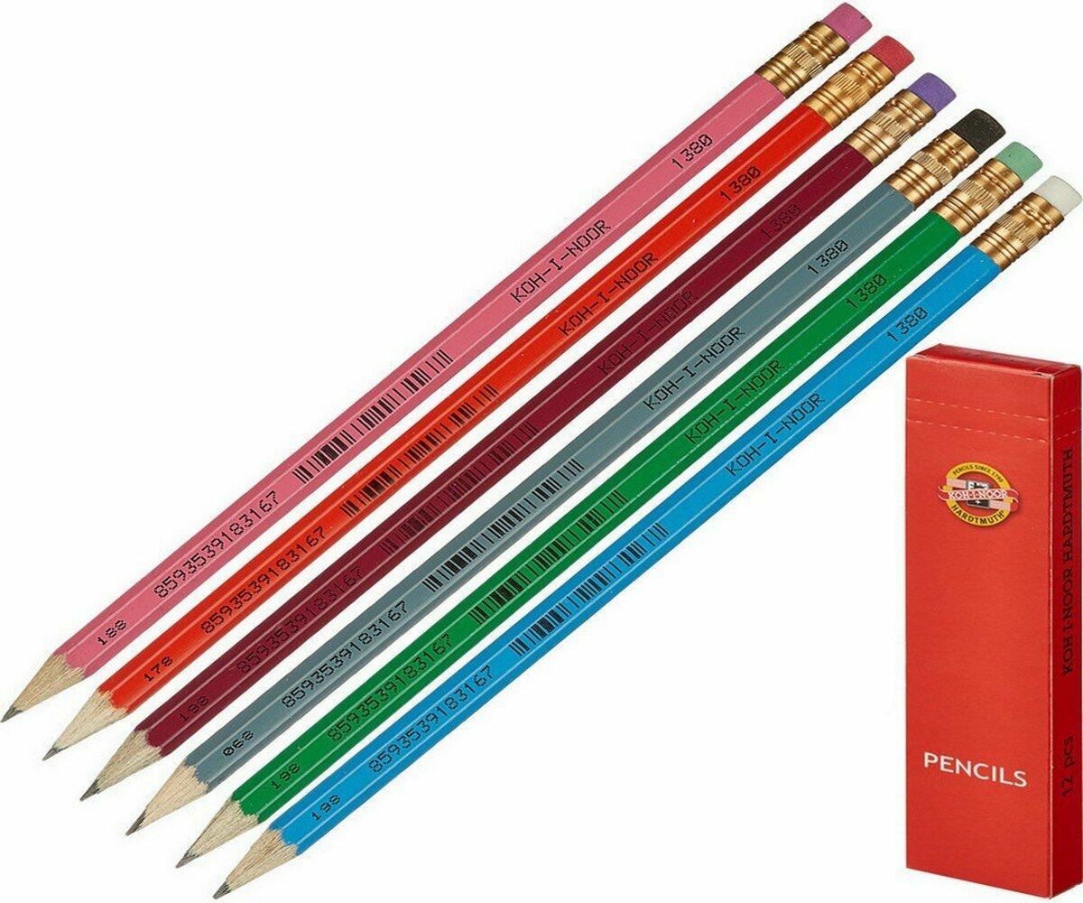 Карандаш чернографитный Koh-I-Noor Astra 1380 (НB, с ластиком, заточенный) (1380002017KSRU), 12шт.