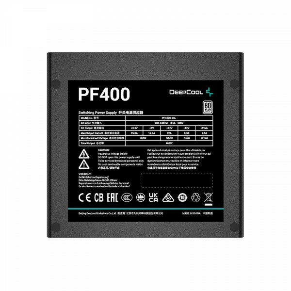 Блок питания DeepCool 400W PF400 (ATX, 80+, 24+2x(4+4) pin, APFC, 120mm fan, RTL) ( (R-PF400D-HA0B-EU)