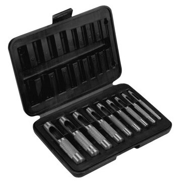 | Подробная комплектация | - пробойники 3 мм; - пробойники 4 мм; - пробойники 5 мм; - пробойники 6 мм; - пробойники 7 мм; - пробойники 8 мм; - пробойники 10 мм; - пробойники 11 мм; - пробойники 12 мм; - кейс. |