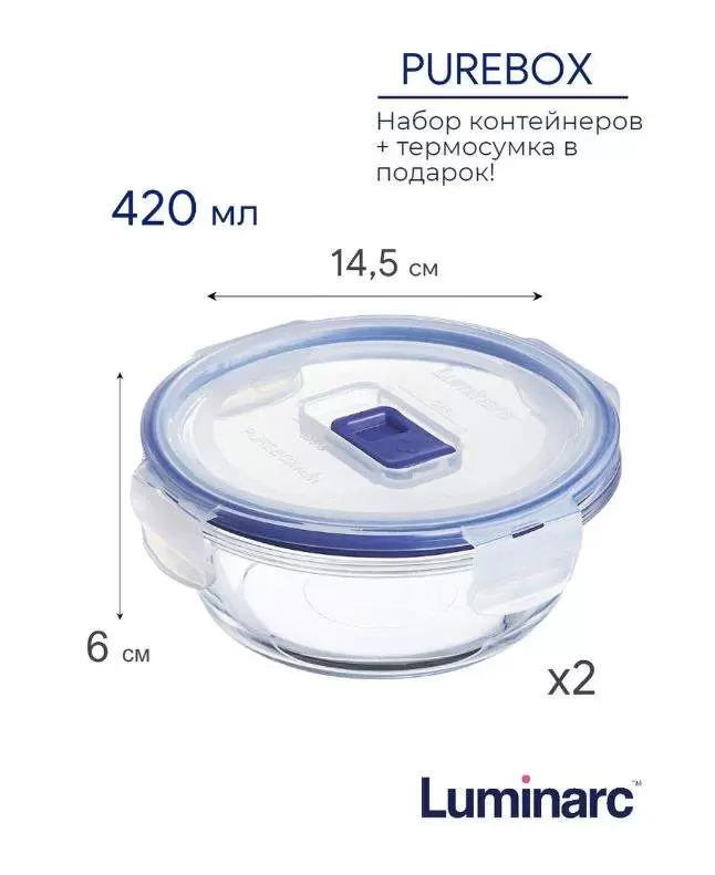 Купить Набор контейнеров Luminarc Purebox 420мл*2шт + термосумка х2шт