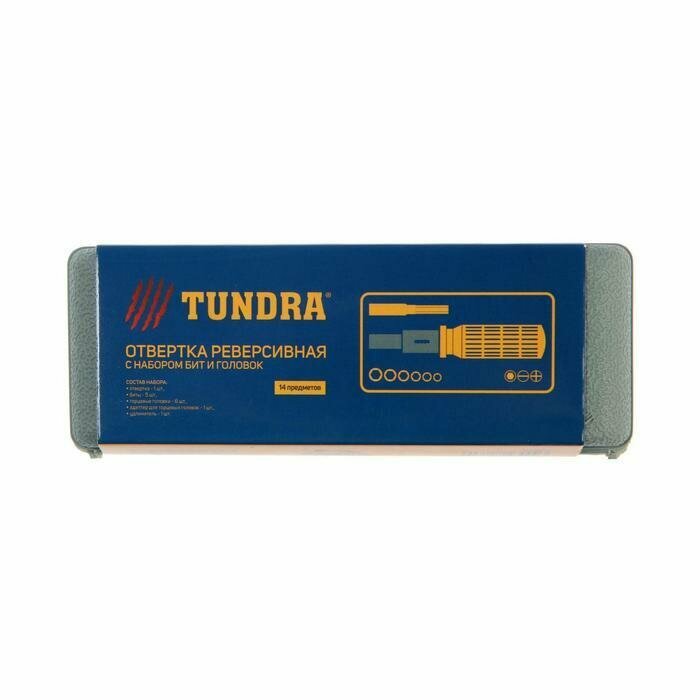 Отвертка с набором бит и головок тундра, реверсивная, в кейсе, 14 предметов