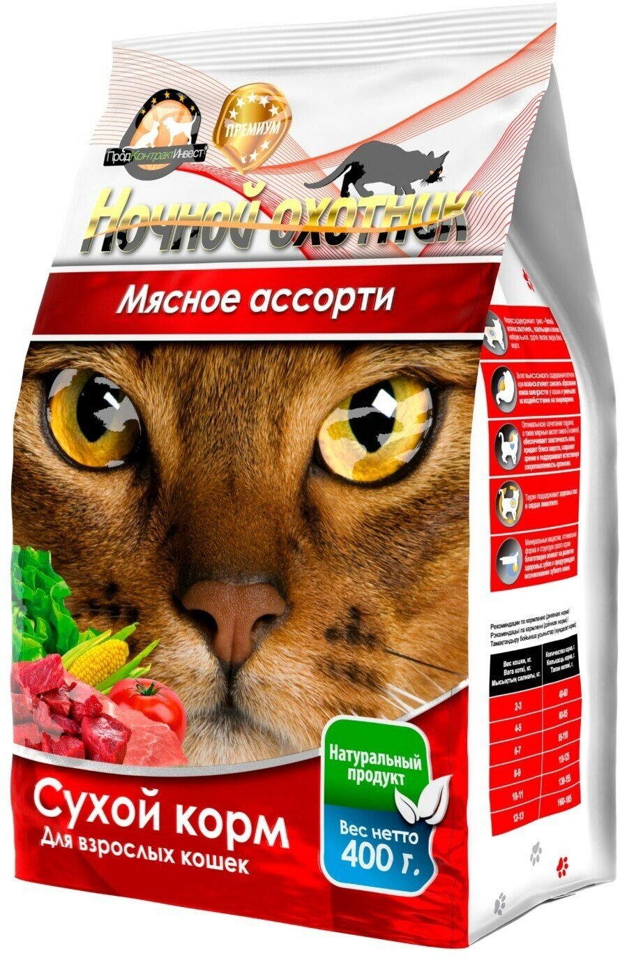 Сухой корм "Ночной охотник" для кошек, мясное ассорти, 400 г