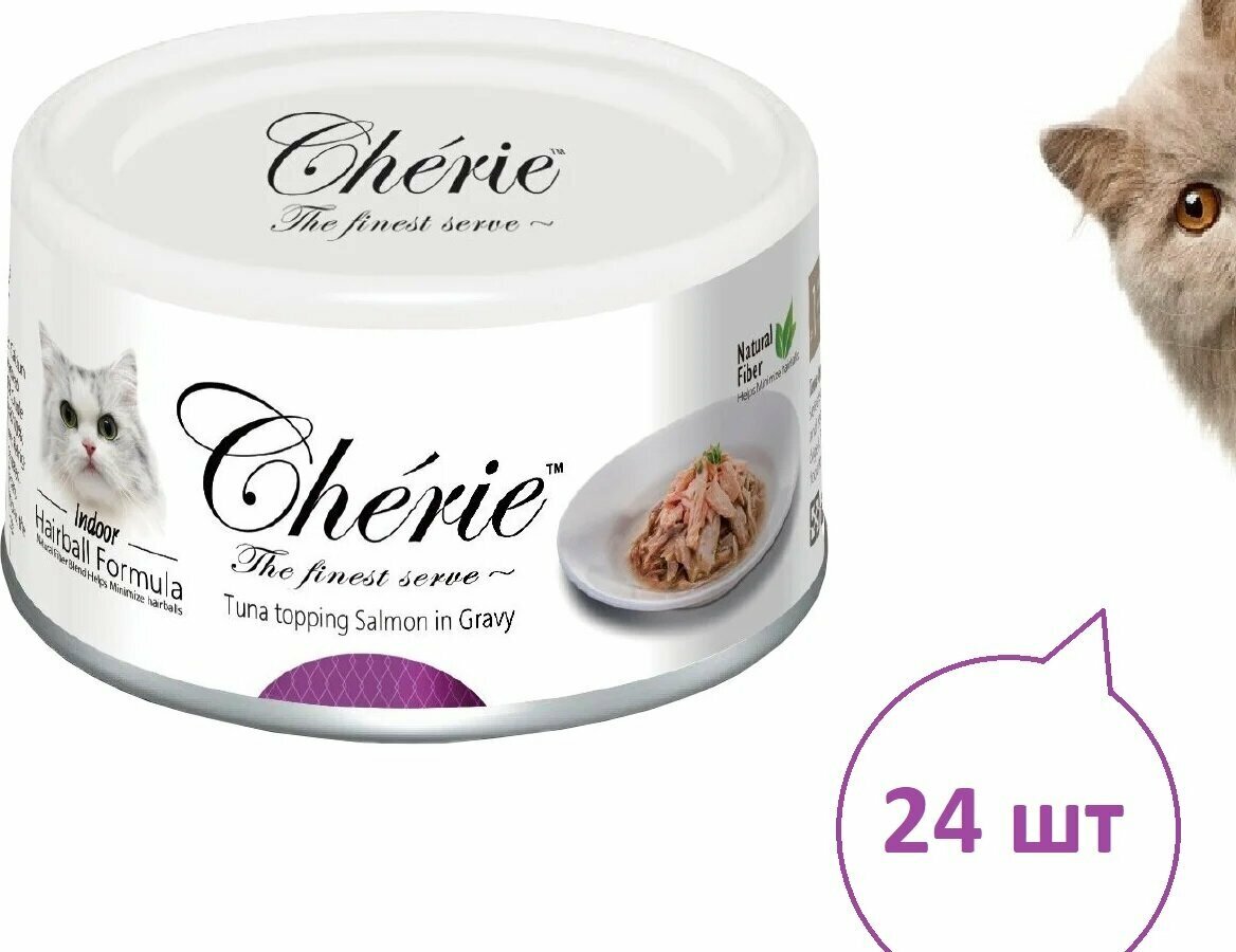 Влажный корм для кошек Pettric Cherie Hairball Formula Tuna topping Salmon/Тунец с лососем в подливке для выведения комочков шерсти, (80 гр* 24 шт)