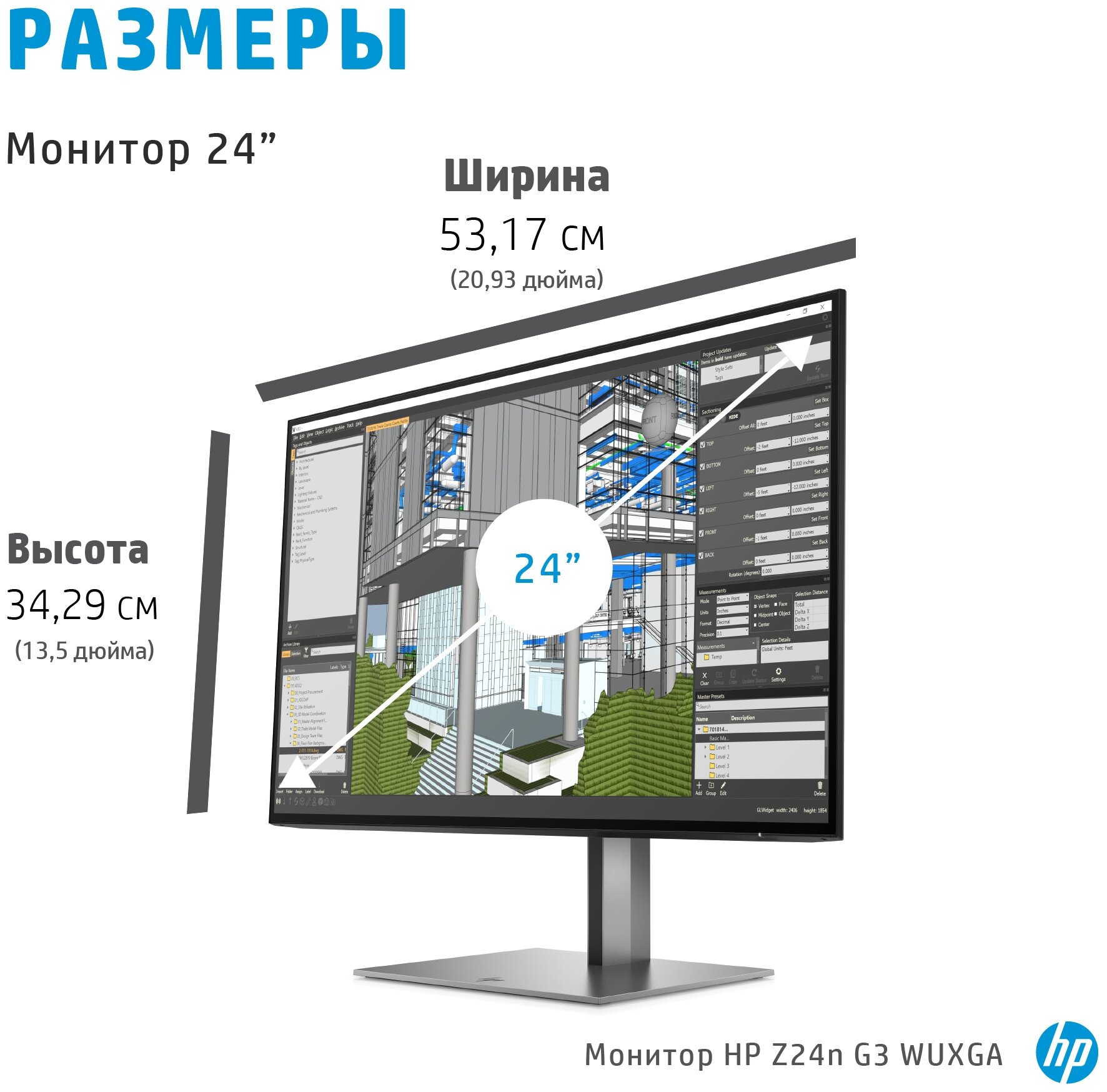 HP Монитор HP 24" Z24n G3 черный IPS LED 16:10 HDMI матовая 350cd 1920x1200 DP WU USB 4.9кг