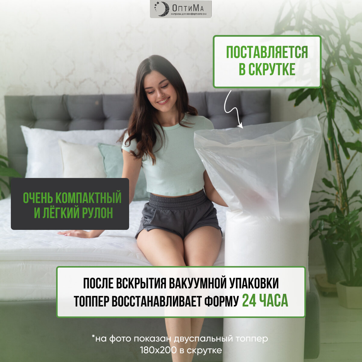 Топпер матрас 180х200 см, ОптиМа, Беспружинный, высота 5 см, Съемный чехол, Плед в подарок