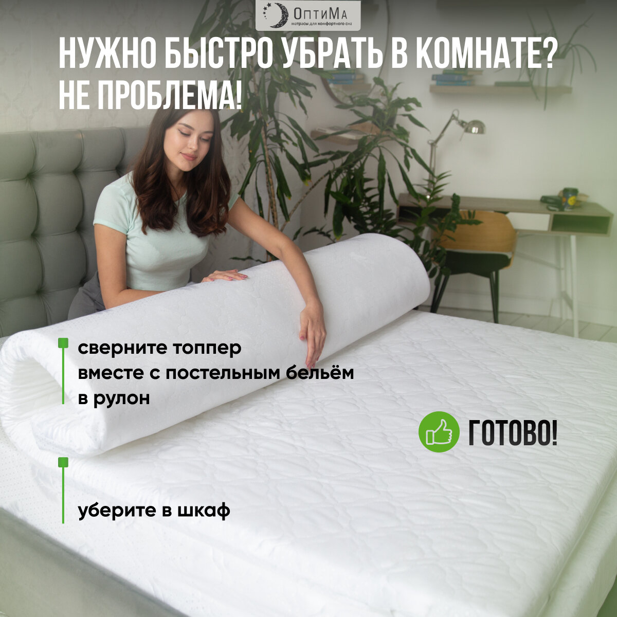 Топпер матрас 100х200 см, ОптиМа, Беспружинный, высота 9 см, Съемный чехол, Плед в подарок
