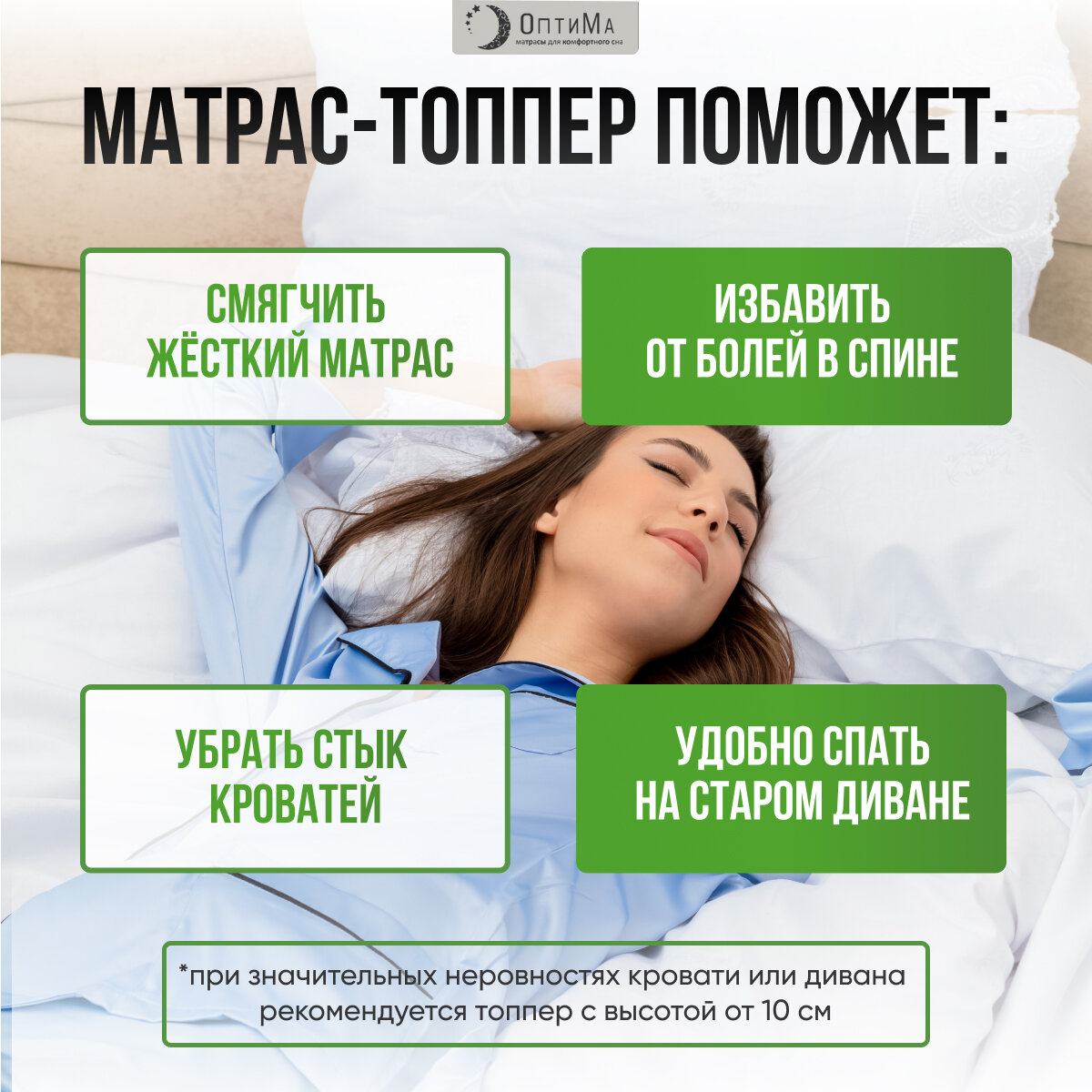 СохранитьТоппер матрас 160х190 см, ОптиМа, Беспружинный, высота 7 см, Съемный чехол, Плед в подарок интересное:
