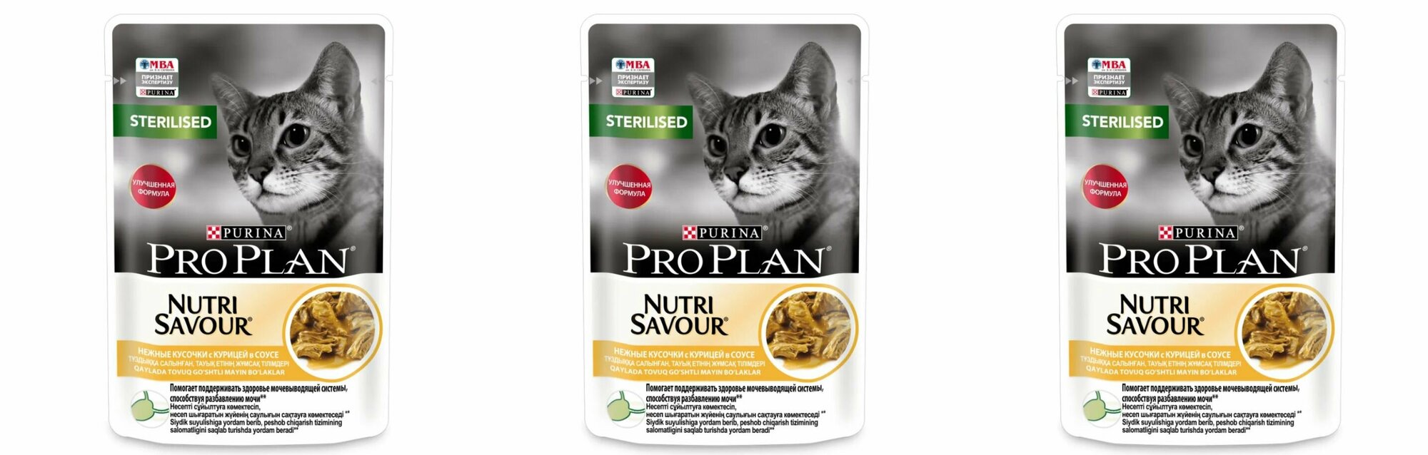 Купить Pro Plan влажный корм для взрослых стерилизованных кошек и кастрированный котов, с курицей в соусе, 85 г, 3 шт