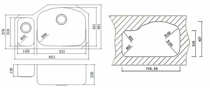 | Дополнительная информация | монтаж под столешницу, толщина металла 1 мм |