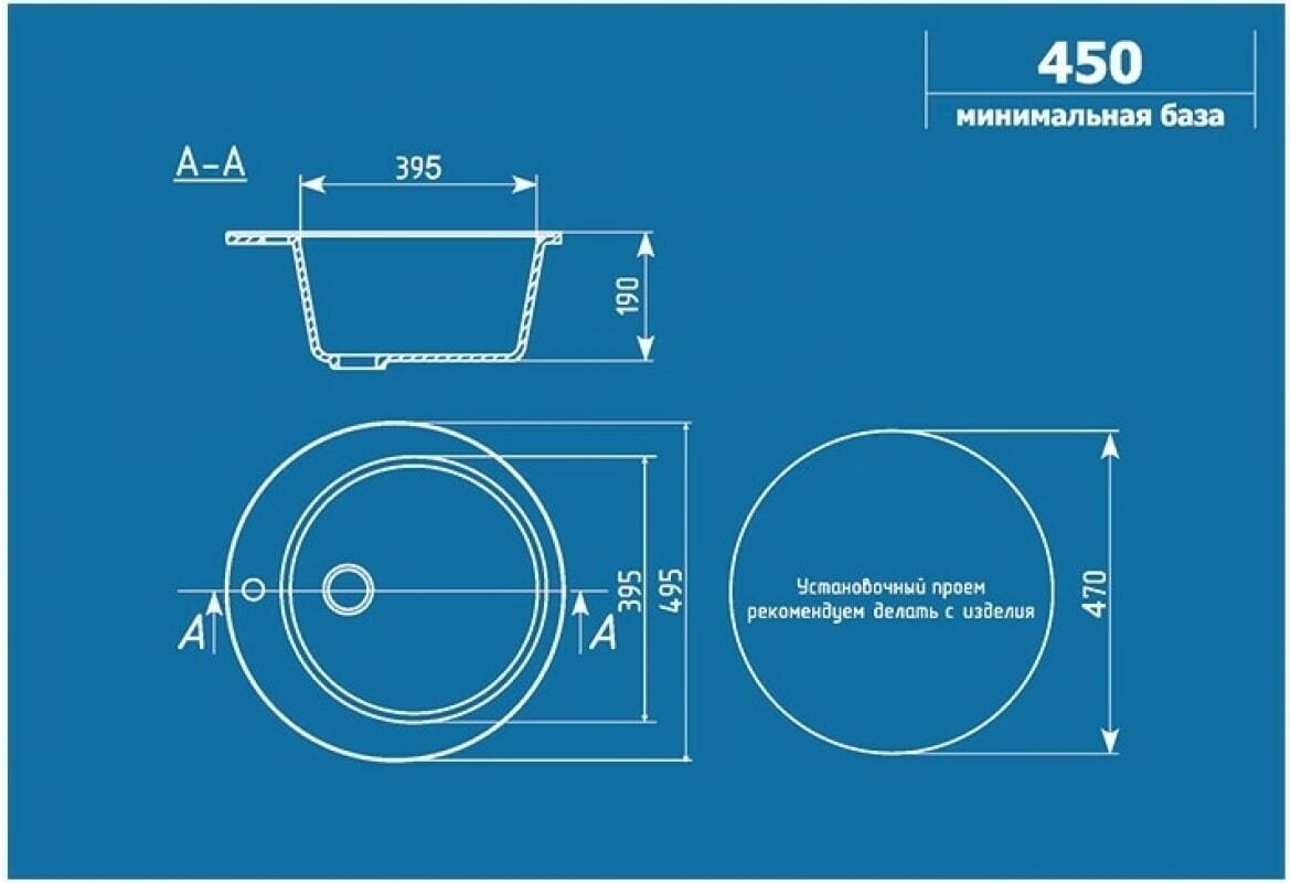 Мойка Ulgran, мрамор, U-405-309, (D-495*190 мм), темно-серый, сифон и сливная арматура