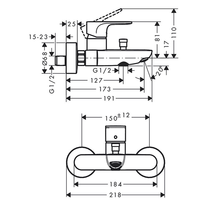 Купить HG Rebris S Смеситель для ванны, внеш.монтаж, цвет матовый черный