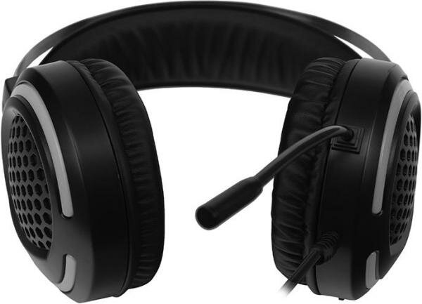 Cbr CHP 827 Armor, Компьютерная гарнитура проводная стерео, игровая, полноразм. наушники, микрофон с шумоподав., USB 2хмини-джек 3,5 мм, LED-подсветка, эргоном. дизайн, длина каб. 2,1 м, цвет чёрный
