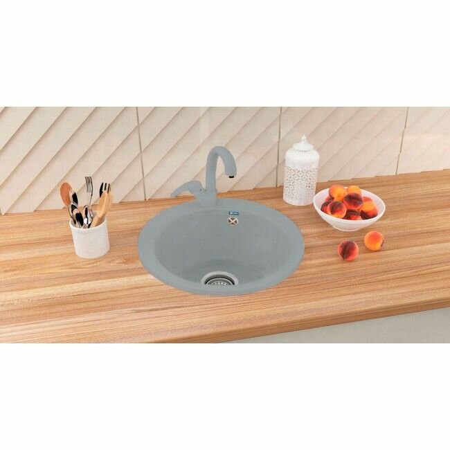 Мойка кухонная Ulgran из искусственного мрамора круглая U-405, цвет: серый, база: 47х47 см, арт. U-405-310