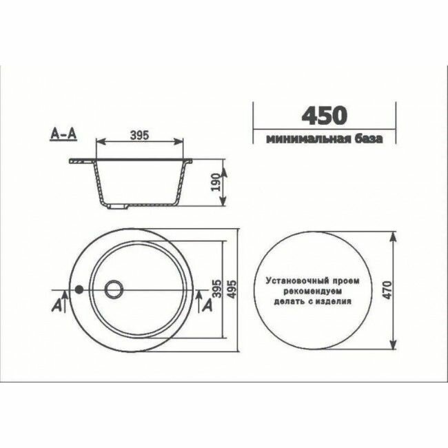 Мойка кухонная Ulgran из искусственного мрамора круглая U-405, цвет: ультра-черный, база: 47х47 см, арт. U-405-344