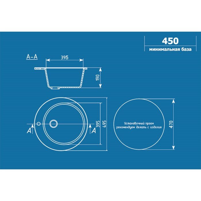 Мойка кухонная Ulgran из искусственного мрамора круглая U-405, цвет: белый, база: 47х47 см, арт. U-405-331