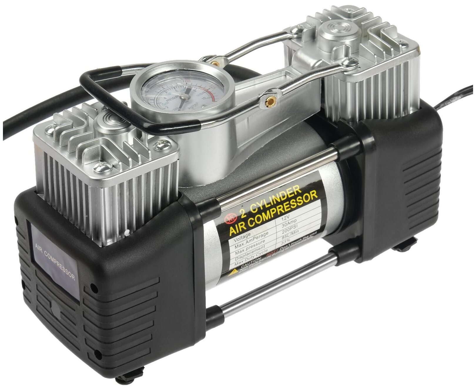 Компрессор TORSO, двухпоршневой, автомобильный 12В, 85 л/мин, сумка, серебристый./В упаковке шт: 1 интересное: