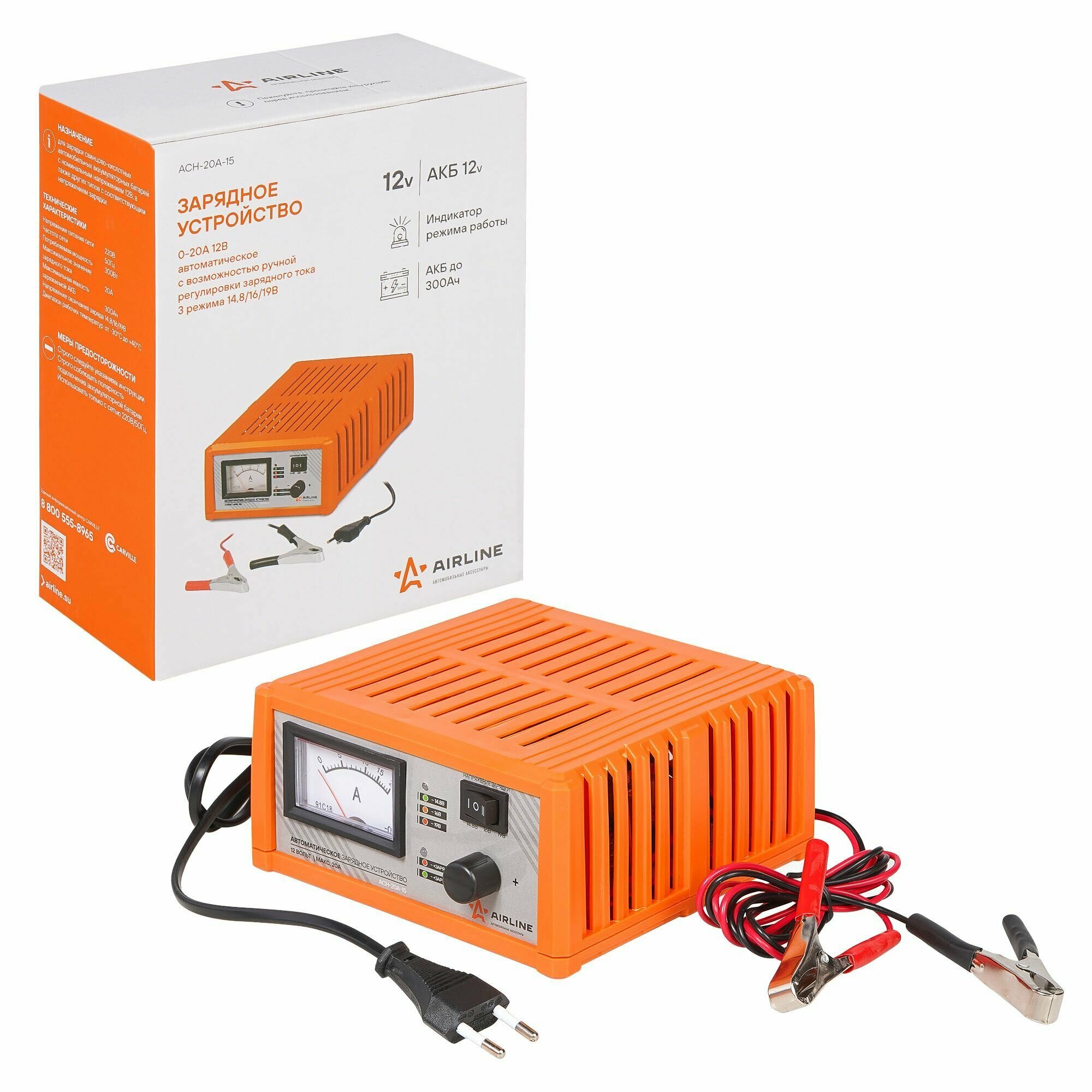 AIRLINE ACH-20A-15 Зарядное устройство 0-20А 12В, амперметр, ручн. регул, импульсн. (3 режима 14,8/16/19В) (ACH-20A-15)
