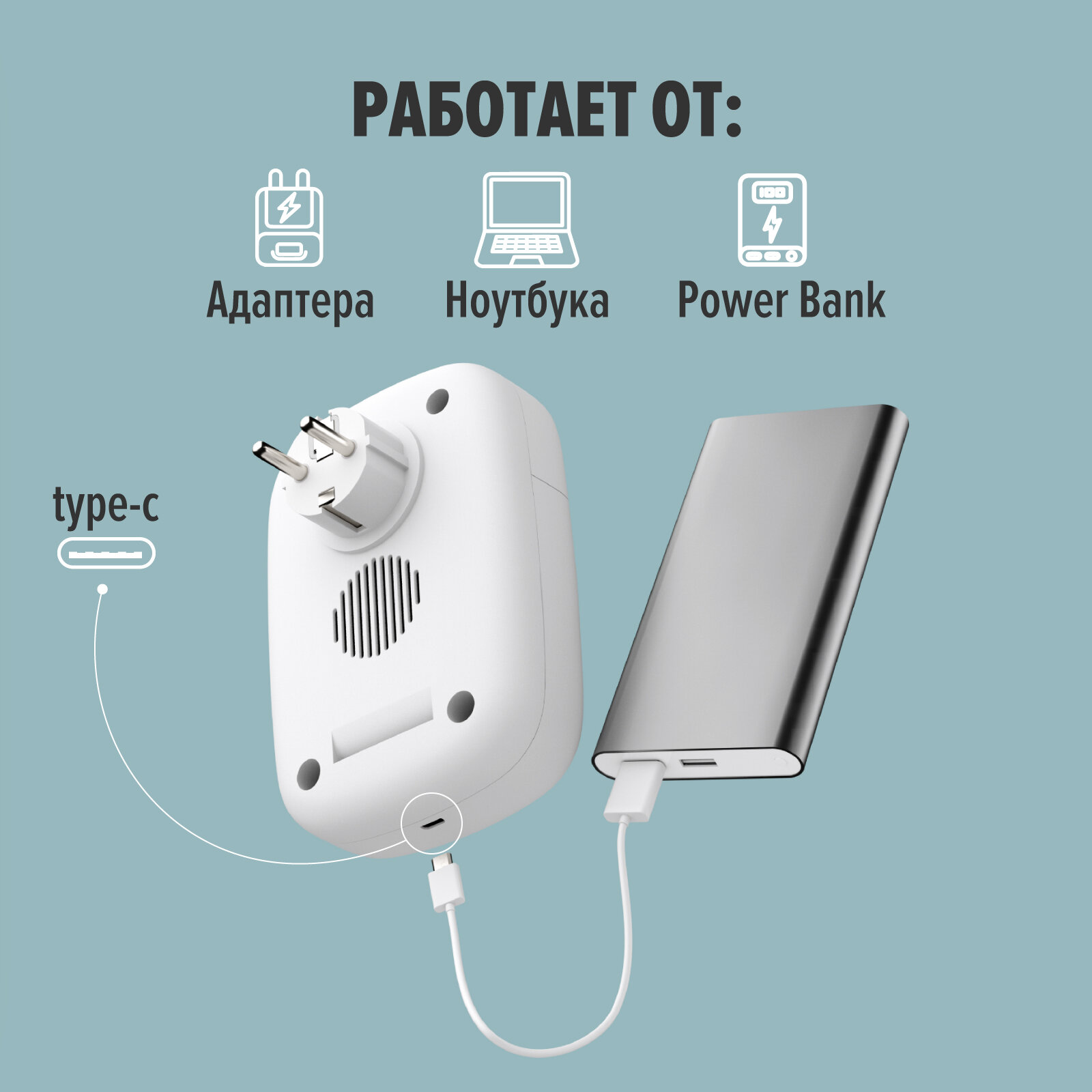Есть возможность подключения через разъём тейп си, что делает его универсальным и даёт возможность использовать его без 220 вольт, например, избавиться от посторонних запахов в автомобиле.