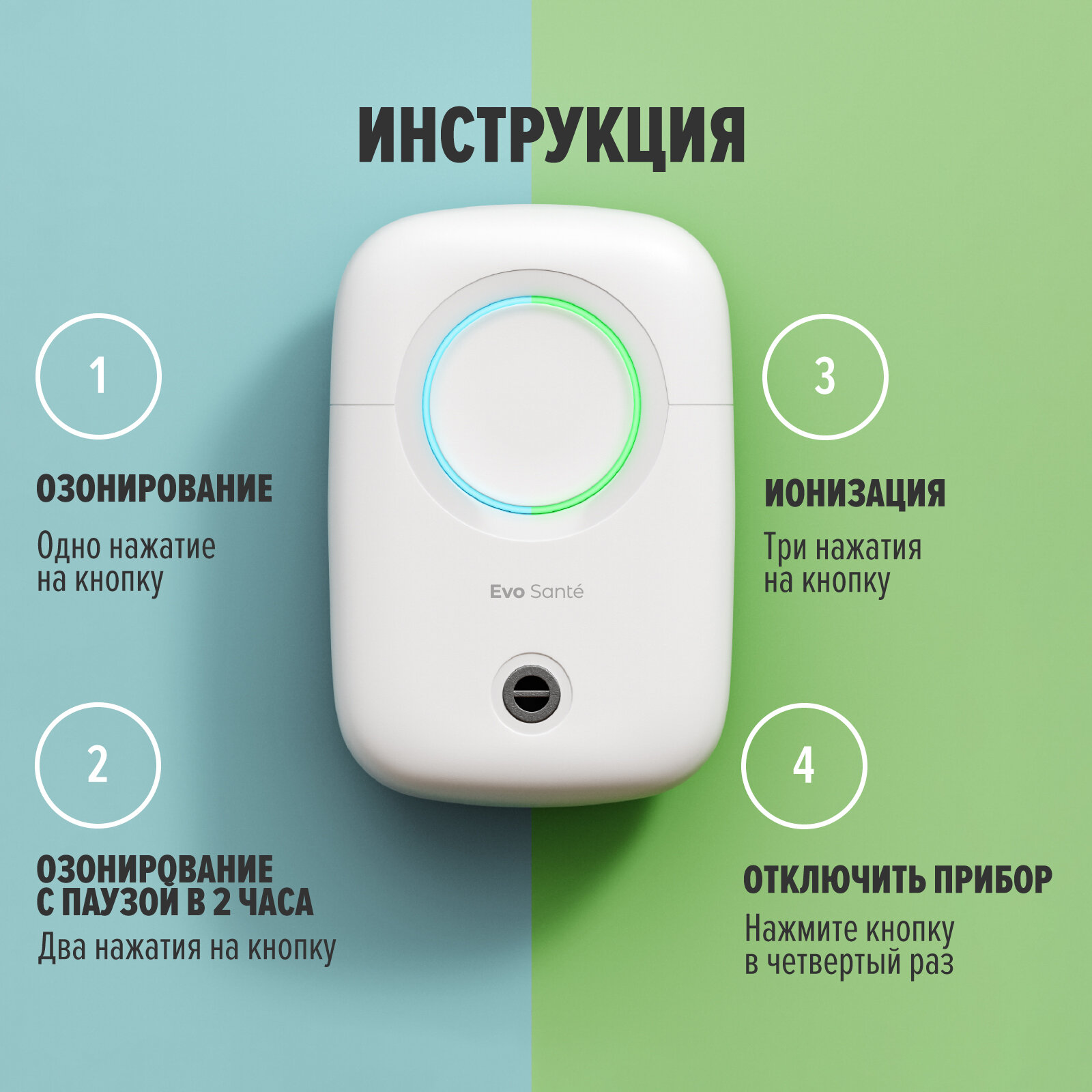 Озонатор Evo Sante, очиститель воздуха, стерилизатор, ионизатор, обеззараживатель воздуха, белый. Озонатор комнатный. Подарок на Новый Год интересное: