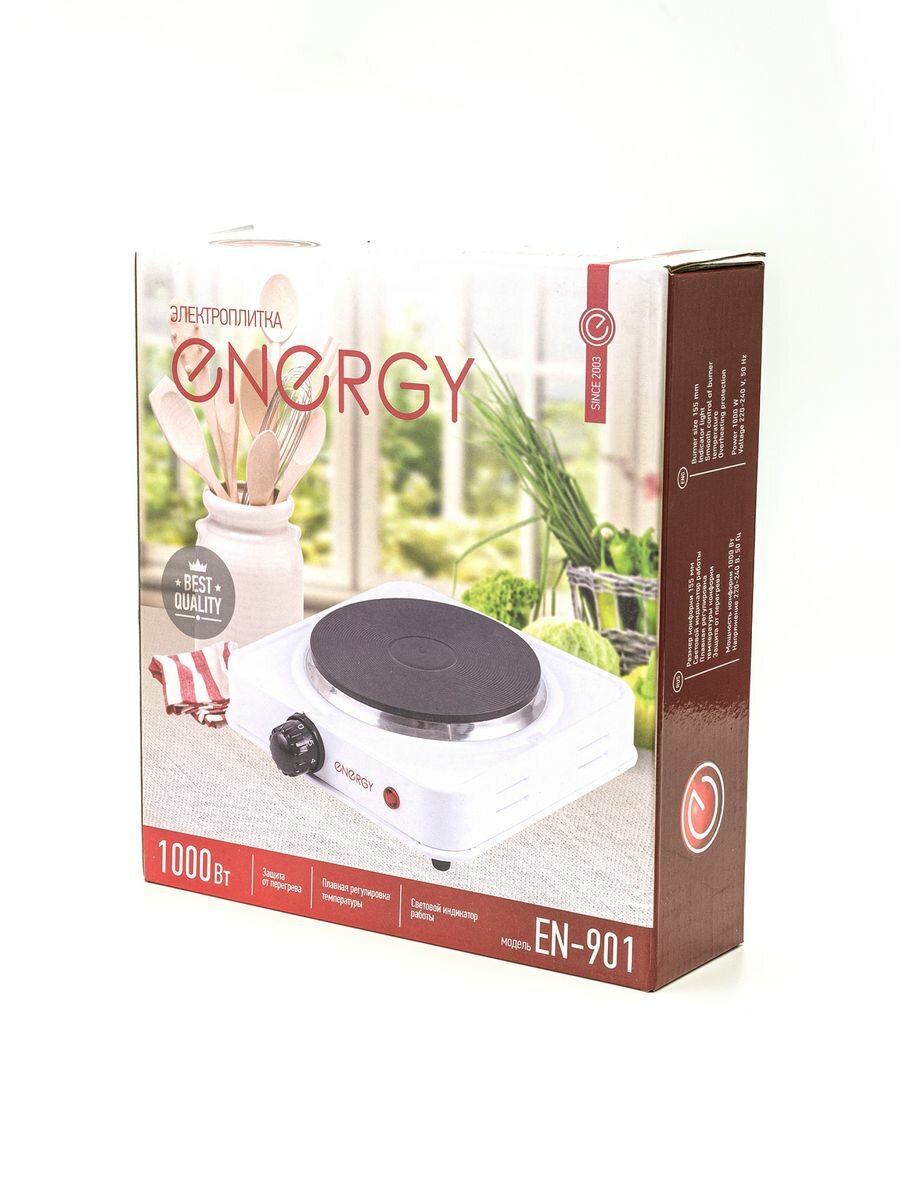 Электроплитка Energy EN-901 белая 1-но конфорочная (закрытый ТЭН, чугун) 1.0 кВт, 155мм