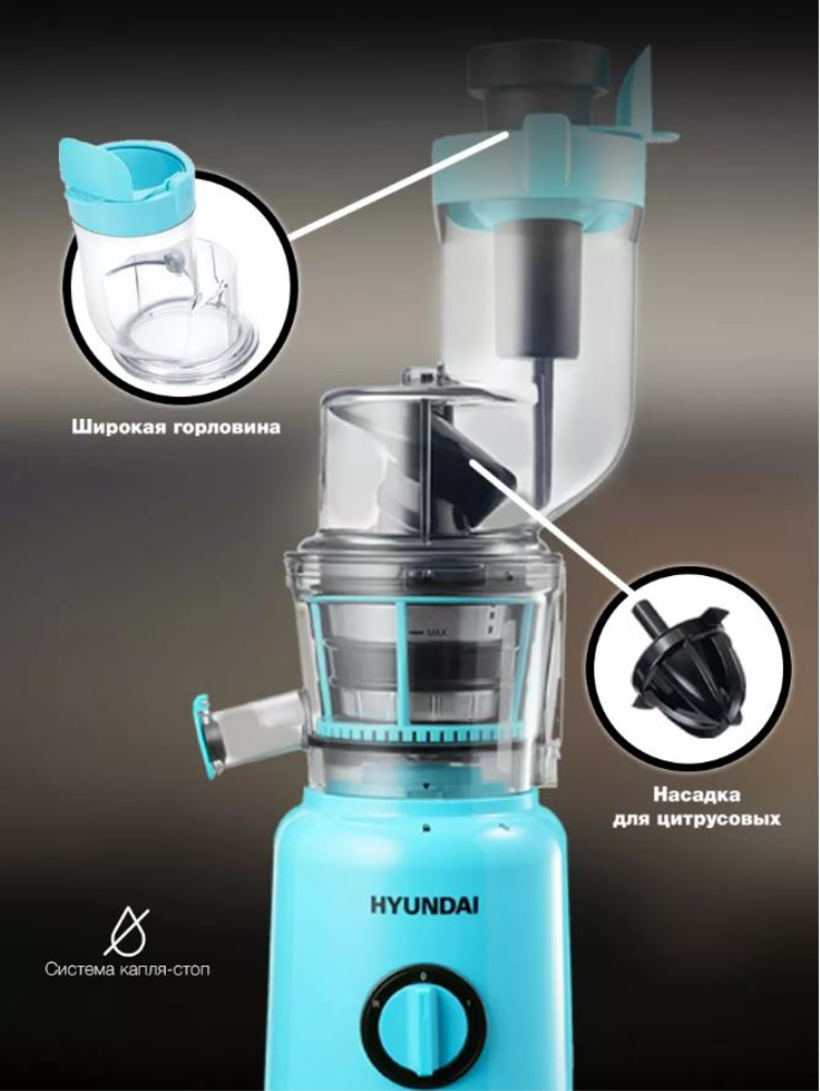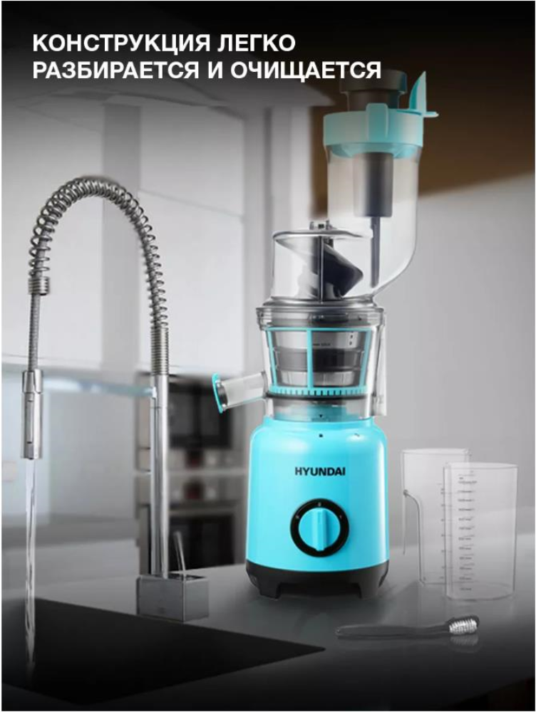 Соковыжималка шнековая Hyundai HY-JS6534 светло-синий интересное: