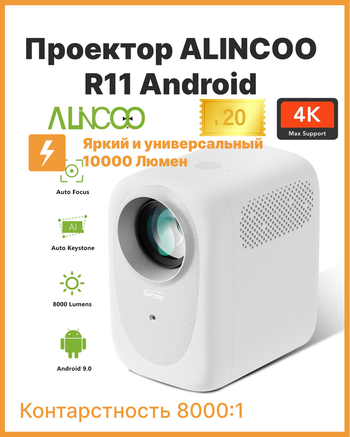 Проектор Everycom R11 (Android, 1080p, 8000 люмен)